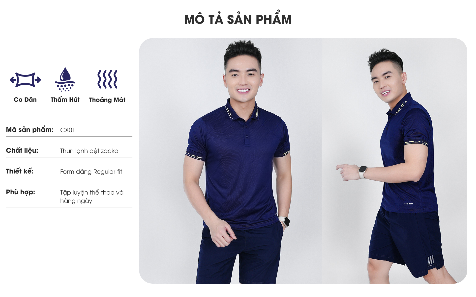 Màu sắc & kích cỡ: Áo nam Hermod - Coolmax cao cấp với form áo regular-fit thoải mái ko gò bó khi vận động tạo nên sự năng động, trẻ trung, phù hợp nhiều lứa tuổi.