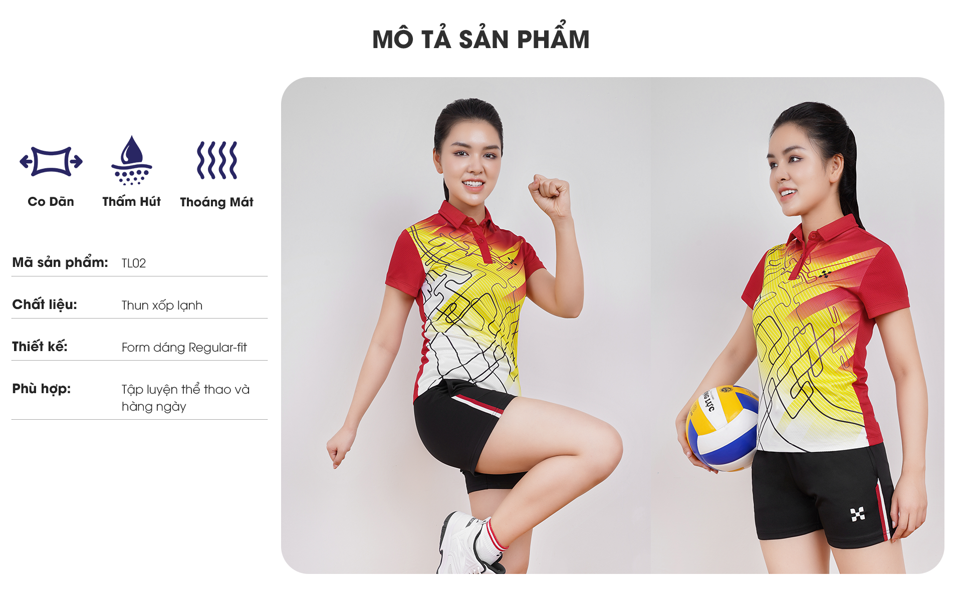 • Co giãn linh hoạt, giúp vận động thoải mái