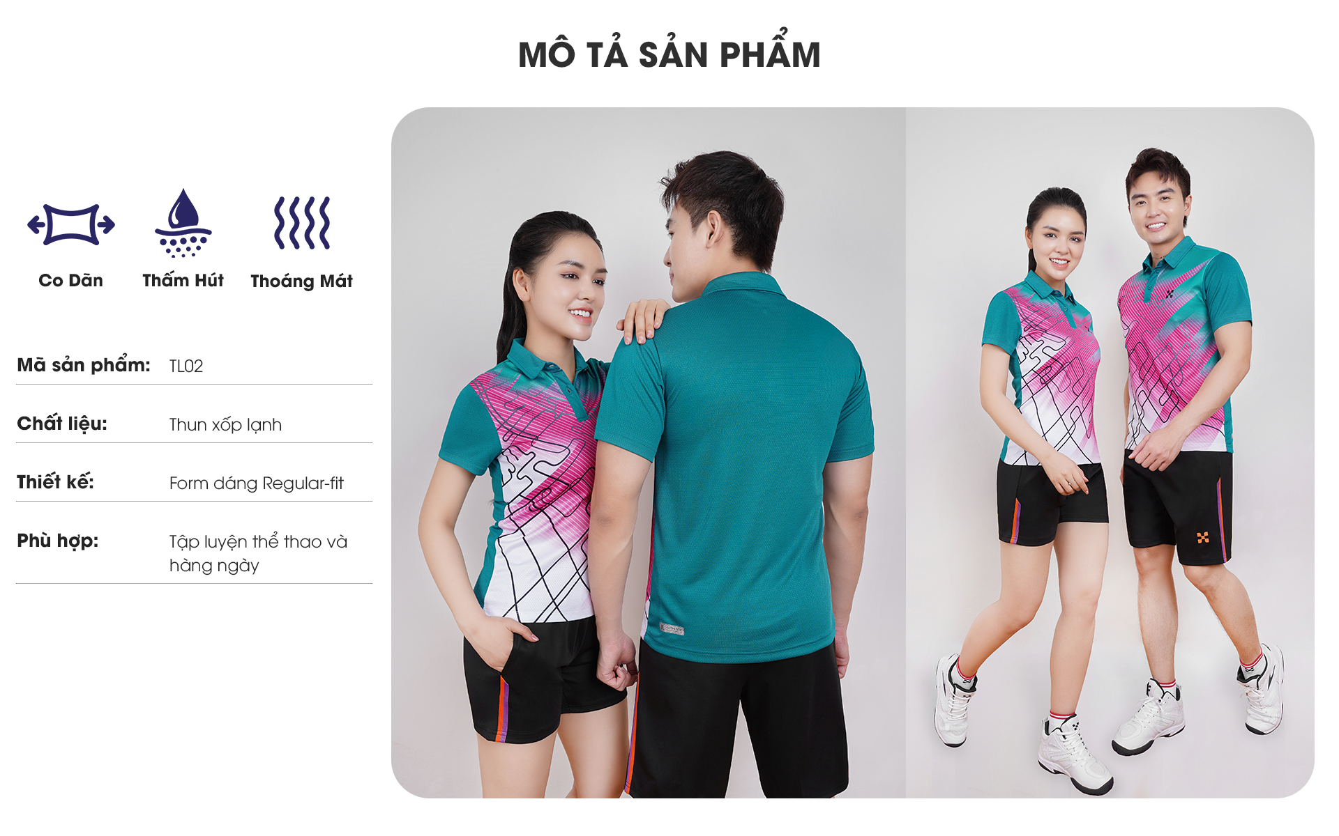 • Chất liệu thoáng mát, thấm hút mồ hôi tốt