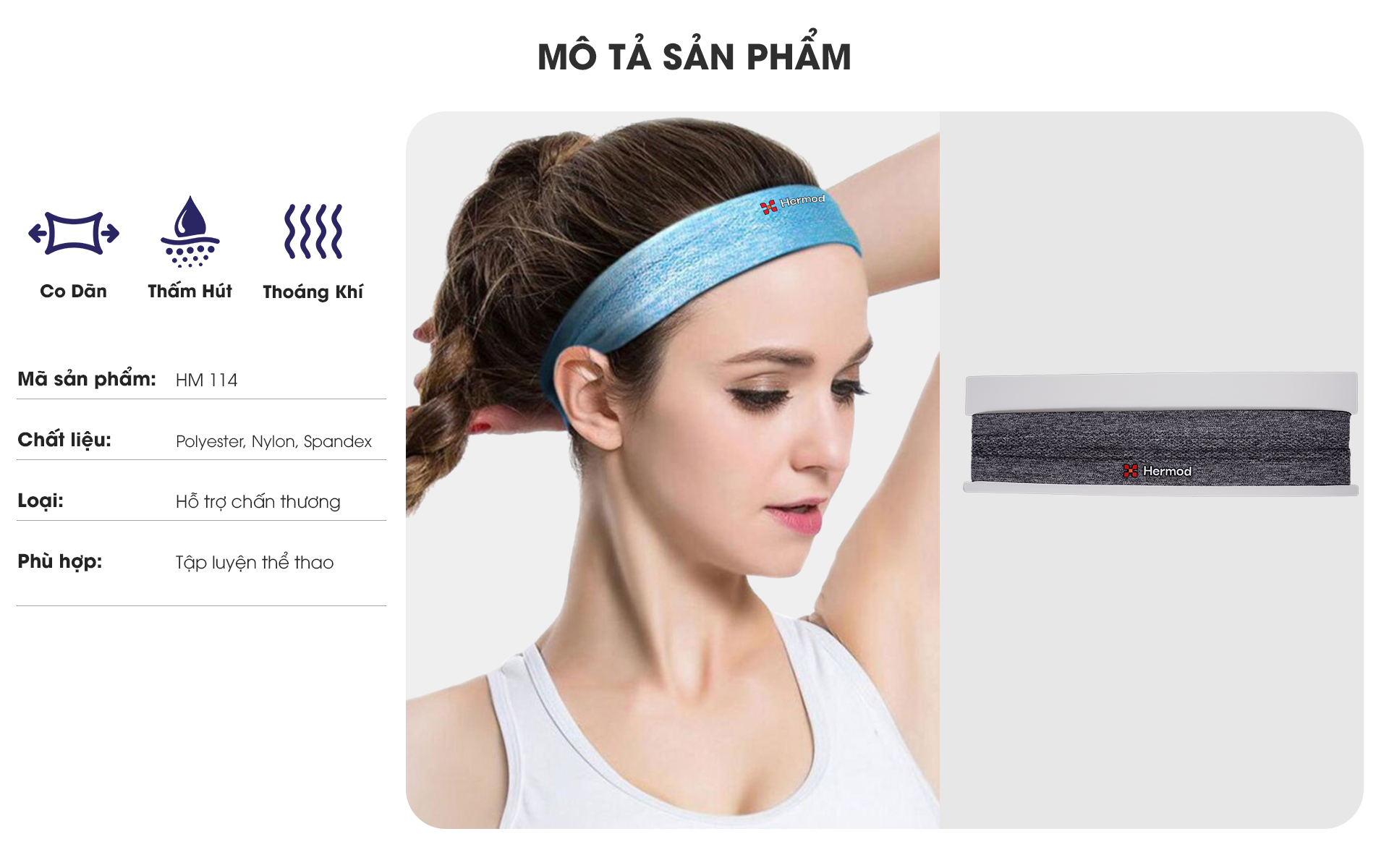 - HM 114 có viền ma sát tạo độ bám bên trong, chống trơn trượt, cố định băng trán, hoạt động chạy nhảy đảm bảo không tuột.