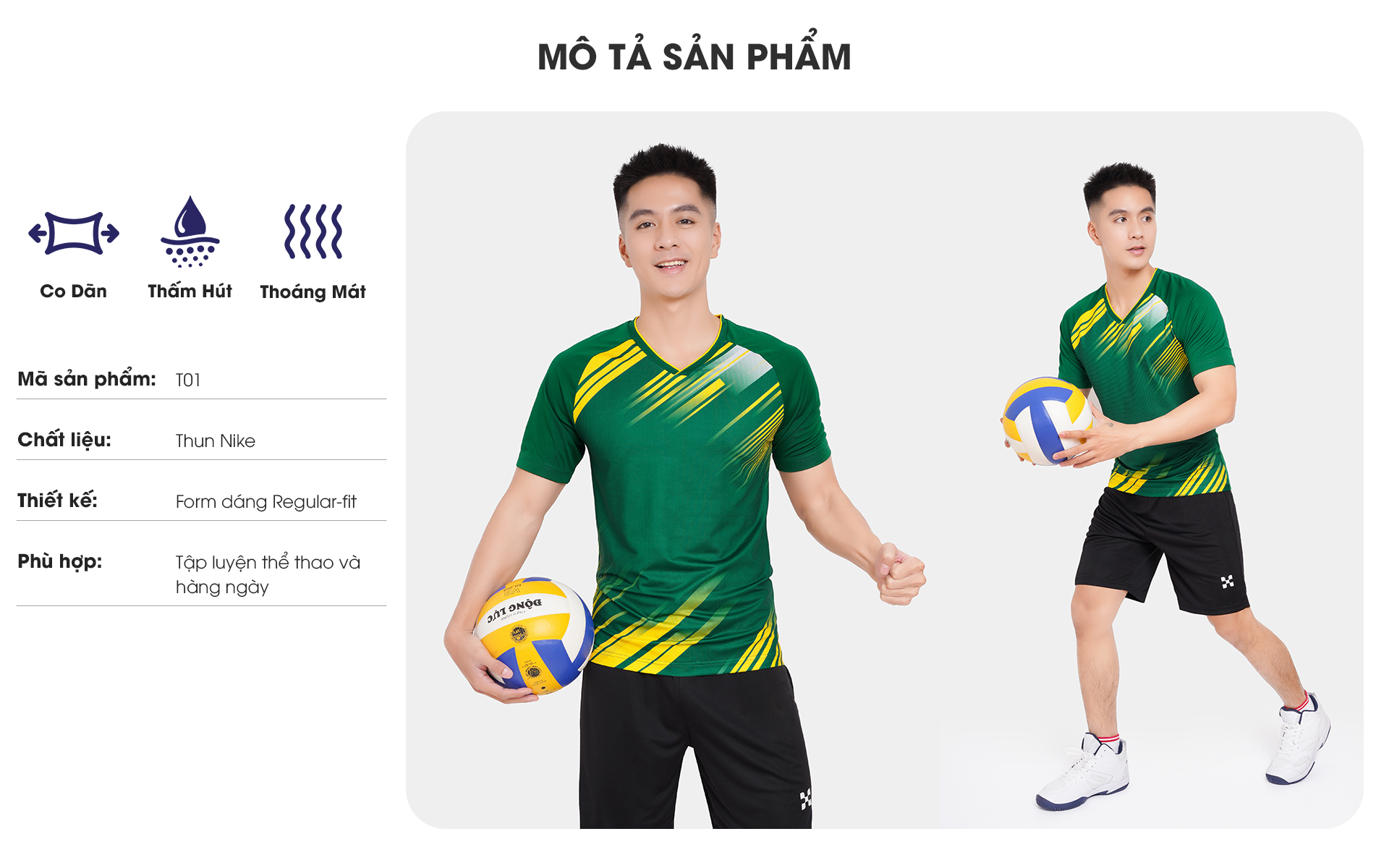 Áo Bóng Đá - Bóng Chuyền Nam Cao Cấp T01 với form chuẩn châu Á thoải mái ko gò bó khi vận động tạo nên sự năng động, trẻ trung, phù hợp nhiều lứa tuổi.