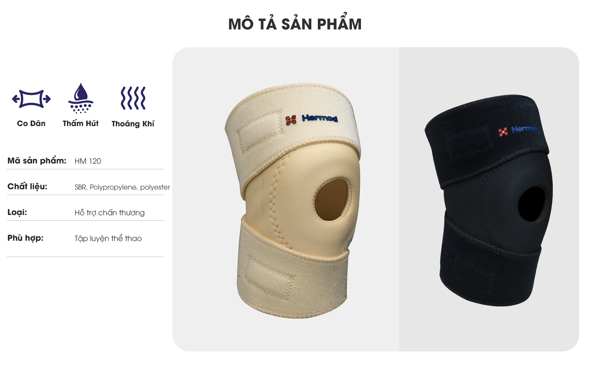 - Bó gối HM 120 là sự lựa chọn lý tưởng cho những buổi chạy, tạo cho bạn cảm giác thoải chắc chắn và thoải mái, hạn chế chấn thương