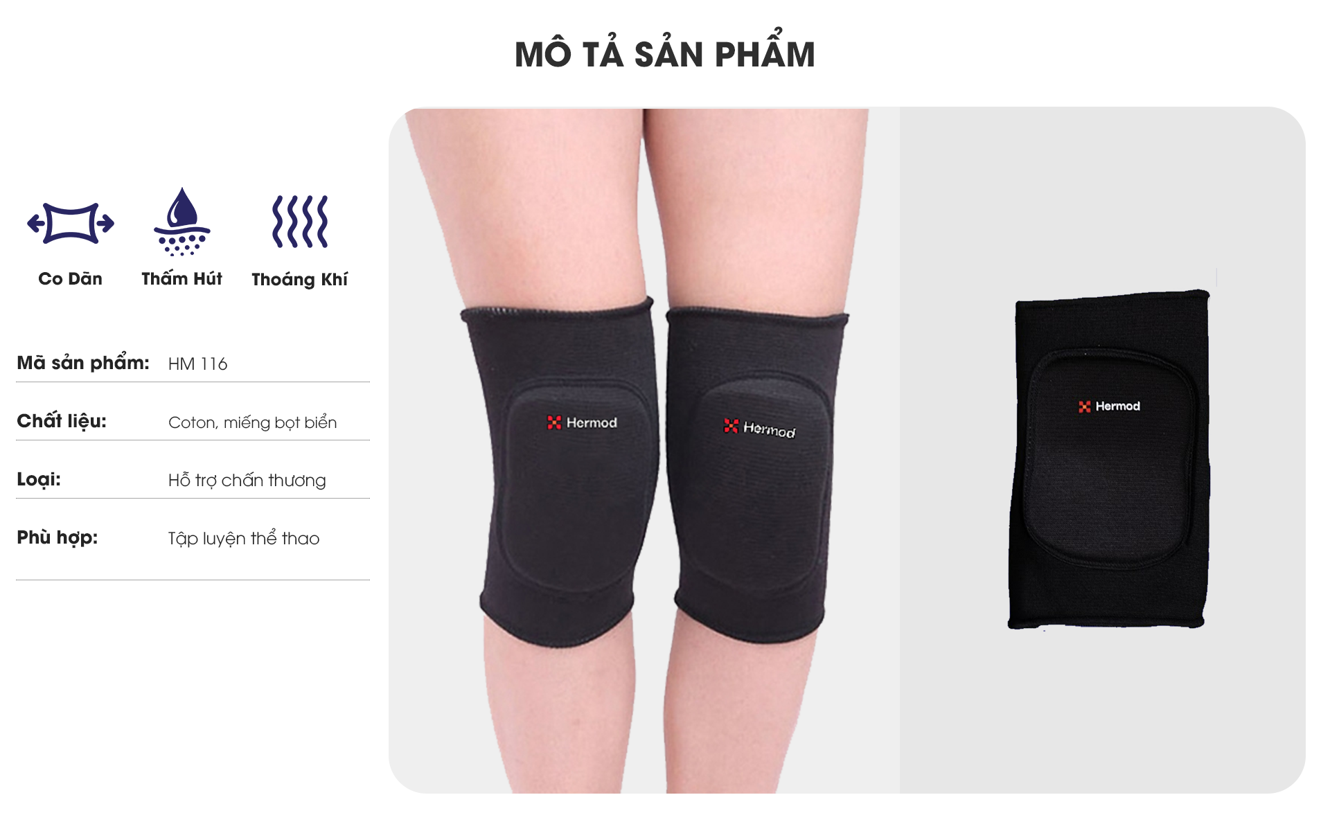- Sử dụng vải cotton co dãn tạo cảm giác thoải mái cho người dùng khi vận động + Miếng bọt biển đàn hồi trùm toàn bộ phần đầu gối. Bảo vệ an toàn khỏi những va đập, trầy xước nguy hiểm