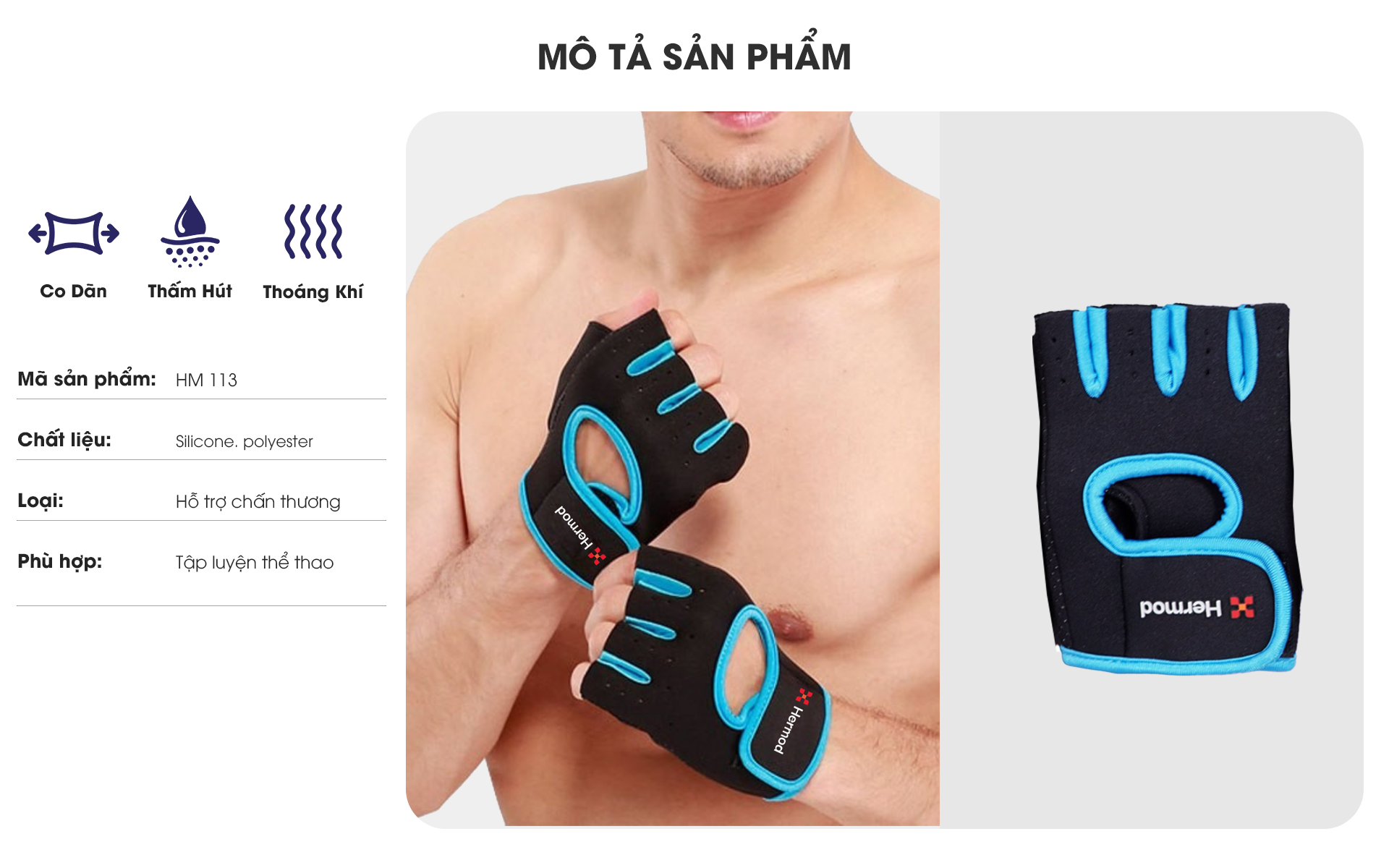 Găng tay tập Gym hở mu bàn tay Hermod - HM 113