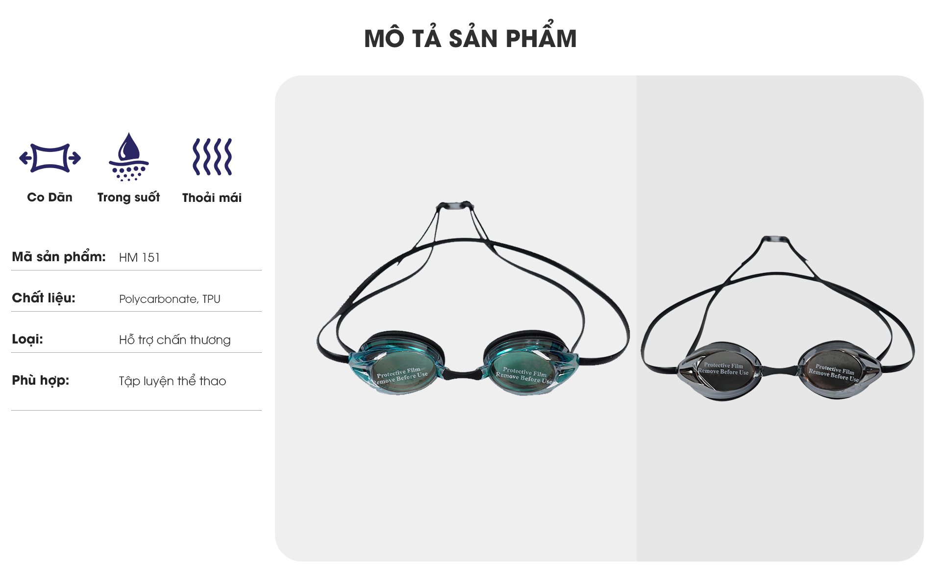 Kính bơi Hermod - HM 151 là lựa chọn xuất sắc dù bạn là vận động viên chuyên nghiệp hay tập luyện thông thường. Mắt kính với đệm silicone ôm mặt gúp ngăn nước hiệu quả và thoải mái trong những buổi tập kéo dài.