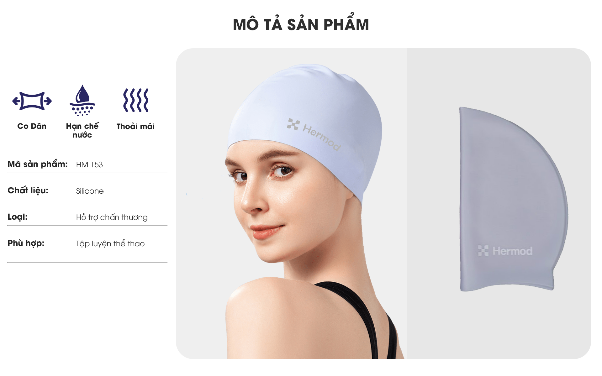 Mũ Bơi Silicone HM 153 là dòng mũ silicone với kiểu dáng tiêu chuẩn (standard) được ưa dùng rộng rãi vì chất liệu mềm mại và giá thành phải chăng. Thiết kế màu sắc đơn giản với logo Yêu Bơi Lội gọn gàng ở một bên, Mũ Bơi Silicone HM 153 rất dễ sử dụng cả đối với người bắt đầu.