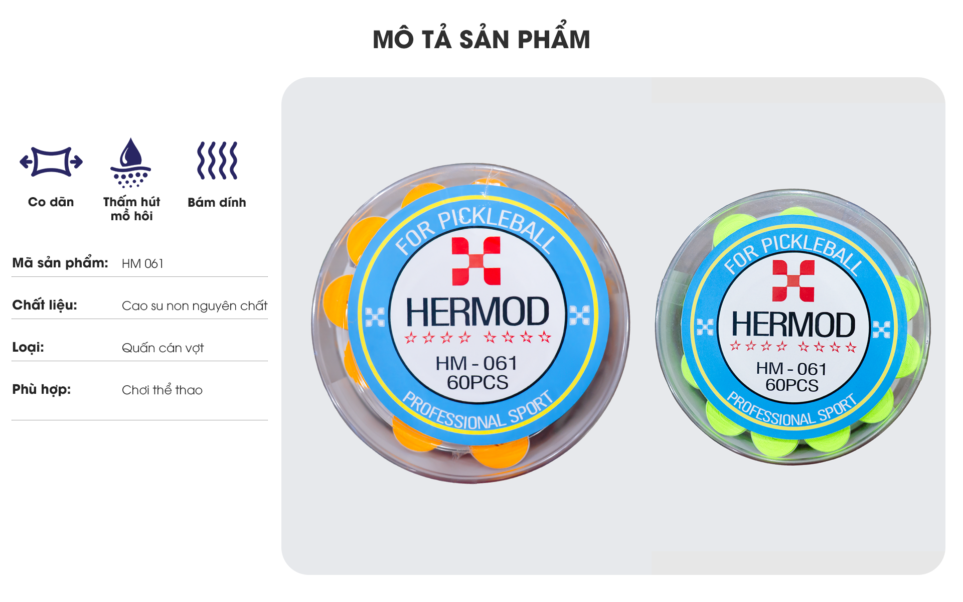 - Thấm hút mồ hôi vượt trội: Giữ cho tay cầm luôn khô ráo, tránh trơn trượt, đặc biệt trong quá trình tập luyện và thi đấu cường độ cao.