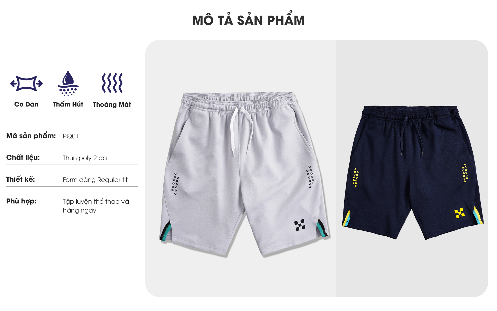 • Quần thể thao PQ01 có thể kết hợp với áo thun, áo ba bỗ, hoặc áo khoác thể thao.